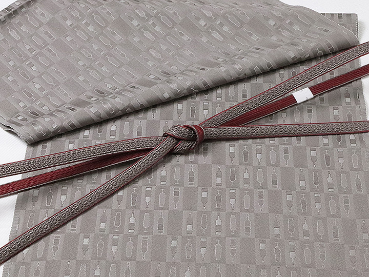 一緒に写っております帯締めは、「綾高麗耳付昼夜【A】 紫鼠/真紅(12)」でございます。