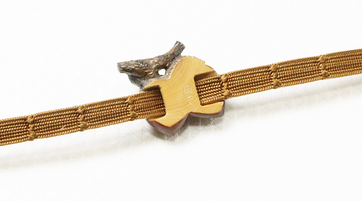 この帯留めという小さな世界に詰め込まれた根付師<岡壱>氏の彫りの世界。