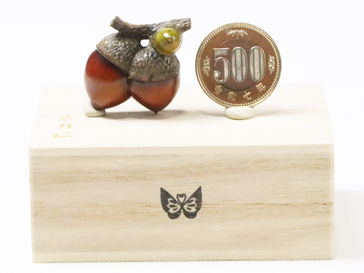 黄楊帯留め 「団栗双子【岡壱名入り】」
