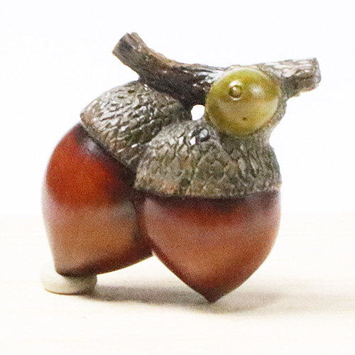仲良く並んだリアルな枝のついた団栗。