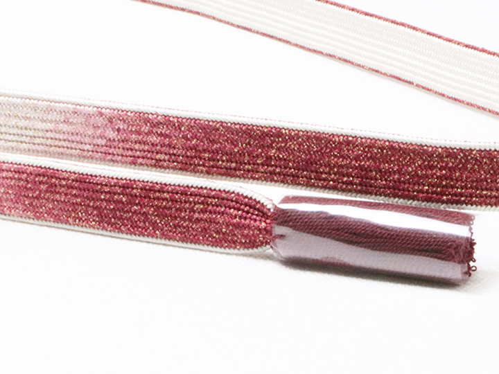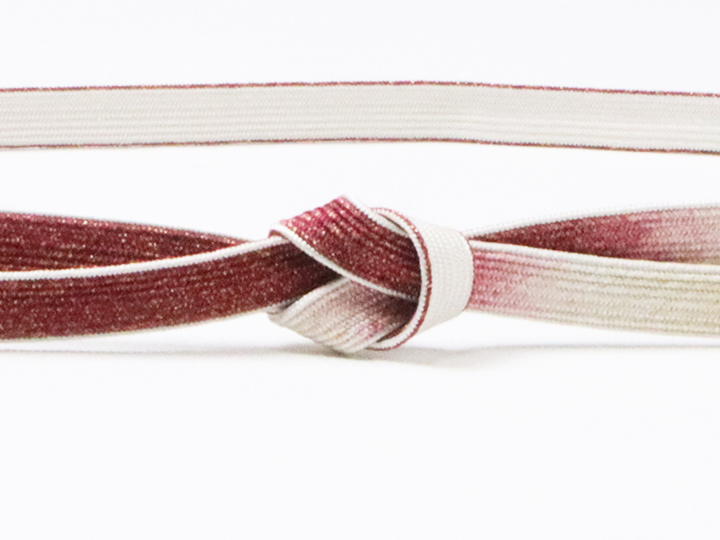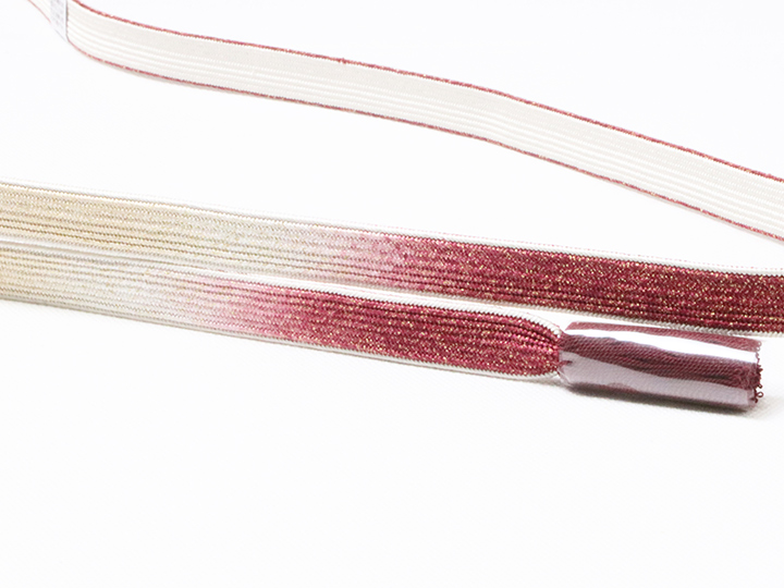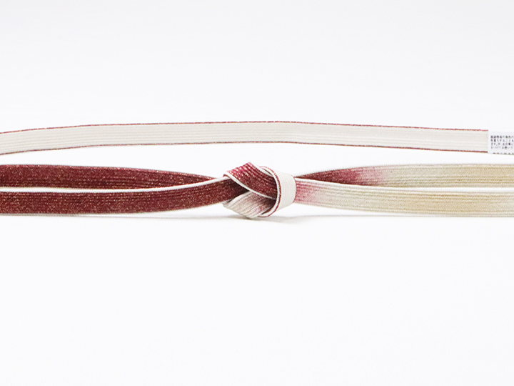 帯締め 「高麗耳付片胴ぼかし金散し」 カラー: 濃紅/洗柿(01) 素材: 絹100%(一部金属糸使用) 糸染め:日本 組加工:中国