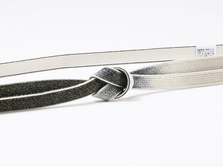 帯締め 「高麗耳付片胴ぼかし金散し」 カラー: 漆黒/潤色(07) 素材: 絹100%(一部金属糸使用) 糸染め:日本 組加工:中国