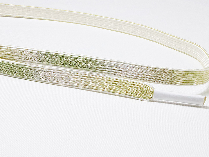 帯締め 「高麗耳付綾目二段ぼかし金散し」 カラー: 女郎花/裏葉柳(02) 素材: 絹100%(一部金属糸使用) 糸染め:日本 組加工:中国 <ERISHO ORIGINAL>