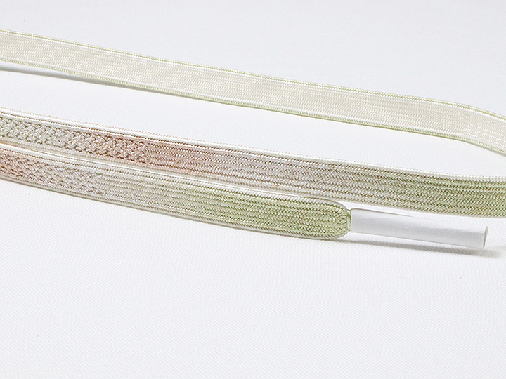 帯締め 「高麗耳付綾目二段ぼかし金散し」 カラー: 夏虫色/虹色(03) 素材: 絹100%(一部金属糸使用) 糸染め:日本 組加工:中国 <ERISHO ORIGINAL>