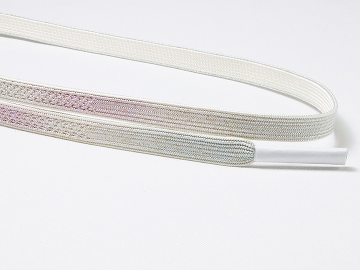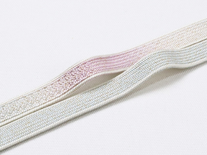 帯締め 「高麗耳付綾目二段ぼかし金散し」 カラー: 白藍/撫子色(04) 素材: 絹100%(一部金属糸使用) 糸染め:日本 組加工:中国 <ERISHO ORIGINAL>