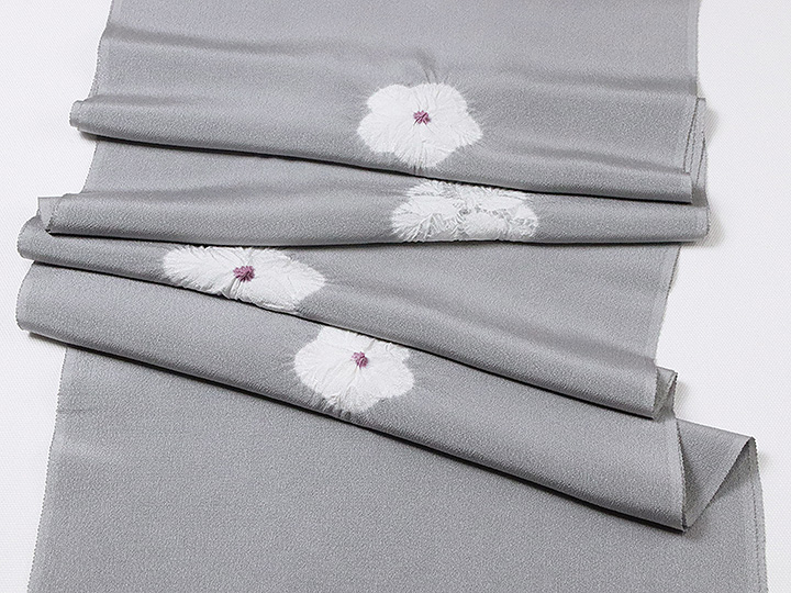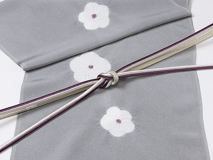 一緒に写っております帯締めは、「丸平唐大和二色立別昼夜 滅紫・暁鼠/オフホワイト(24)」でございます。