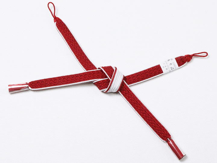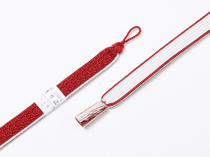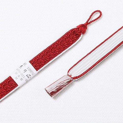 羽織紐 「女短 綾高麗耳付昼夜」 カラー: 深赤/白練(01) 素材: 絹 100% 日本製 <ERISHO ORIGINAL> <MADE IN KYOTO>