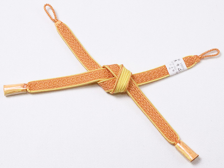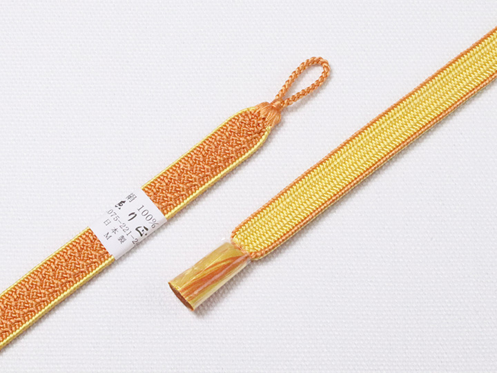 羽織紐 「女短 綾高麗耳付昼夜」 カラー: 深支子/花葉色(14) 素材: 絹 100% 日本製 <ERISHO ORIGINAL> <MADE IN KYOTO>