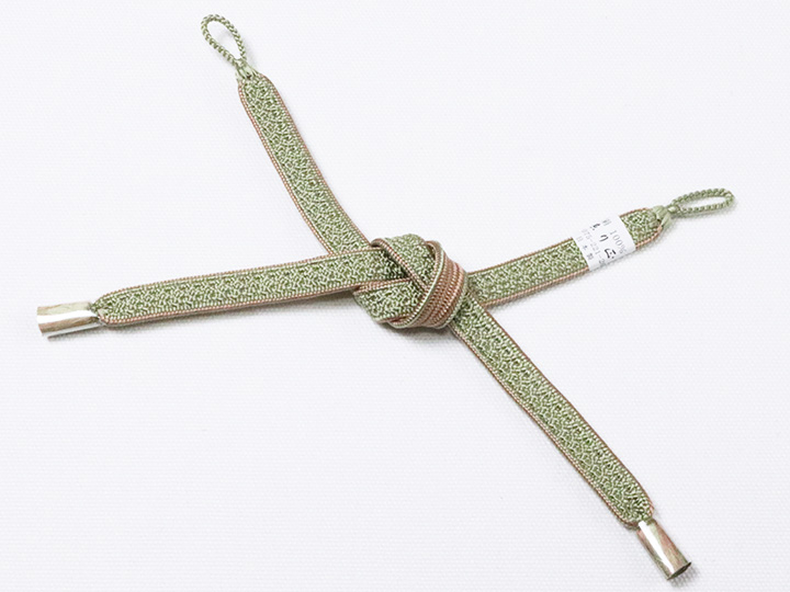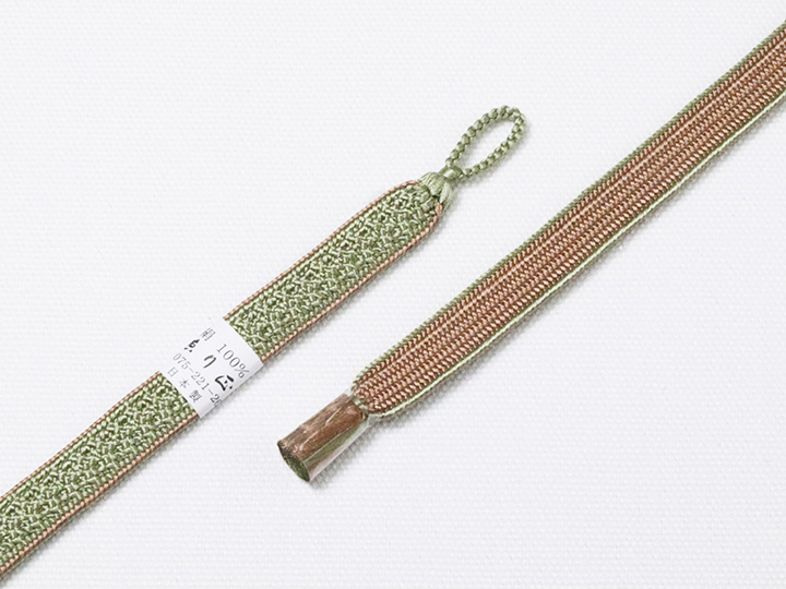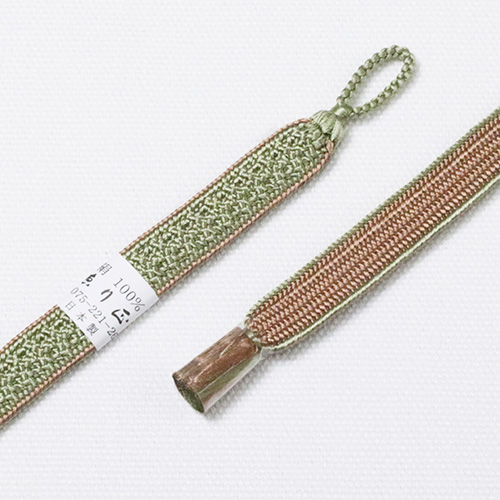 羽織紐 「女短 綾高麗耳付昼夜」 カラー: 山葵色/丁子茶(04) 素材: 絹 100% 日本製 <ERISHO ORIGINAL> <MADE IN KYOTO>