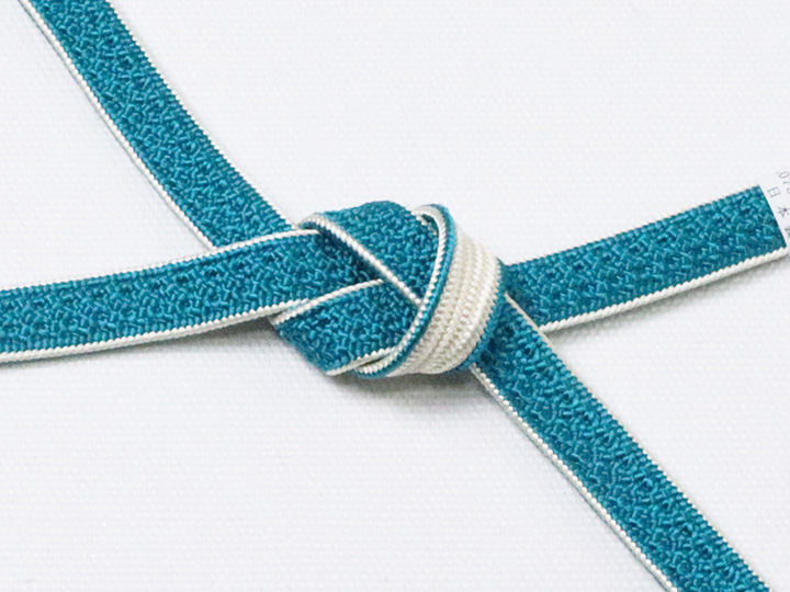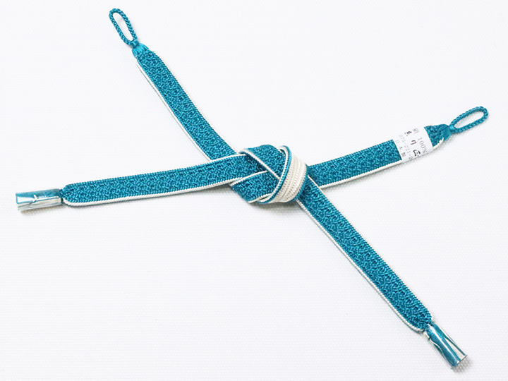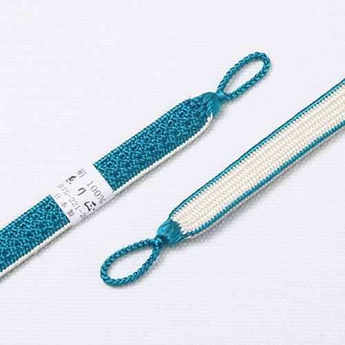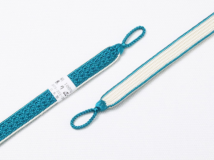 羽織紐 「女短 綾高麗耳付昼夜」 カラー: ターコイズブルー/オフホワイト(07) 素材: 絹 100% 日本製 <ERISHO ORIGINAL> <MADE IN KYOTO>