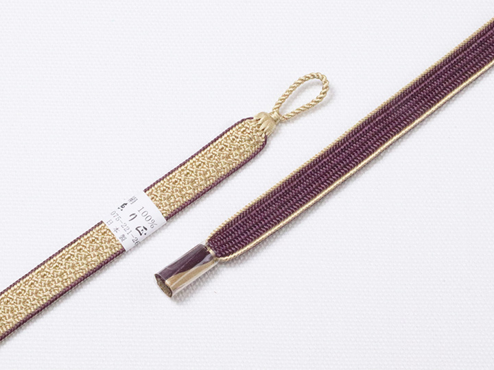 羽織紐 「女短 綾高麗耳付昼夜」 カラー: 榛色/蒲葡(11) 素材: 絹 100% 日本製 <ERISHO ORIGINAL> <MADE IN KYOTO>