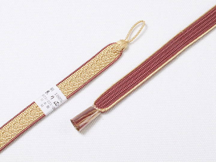 羽織紐 「女短 綾高麗耳付昼夜」 カラー: 亜麻色/京紫(15) 素材: 絹 100% 日本製 <ERISHO ORIGINAL> <MADE IN KYOTO>