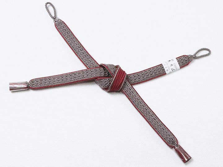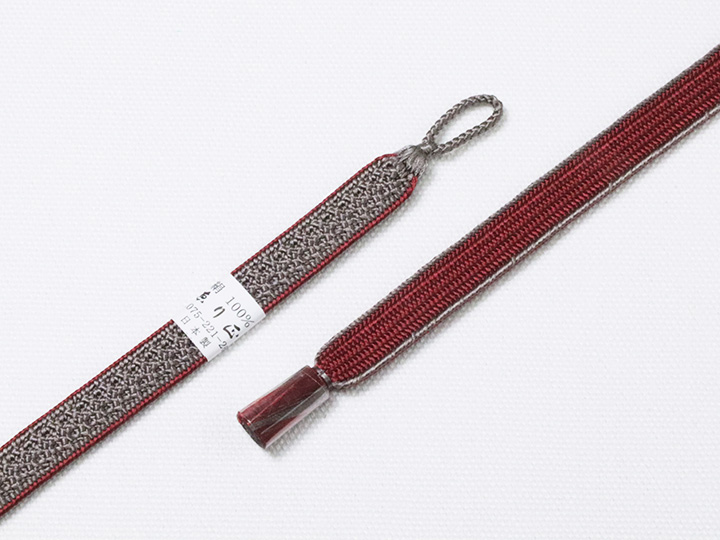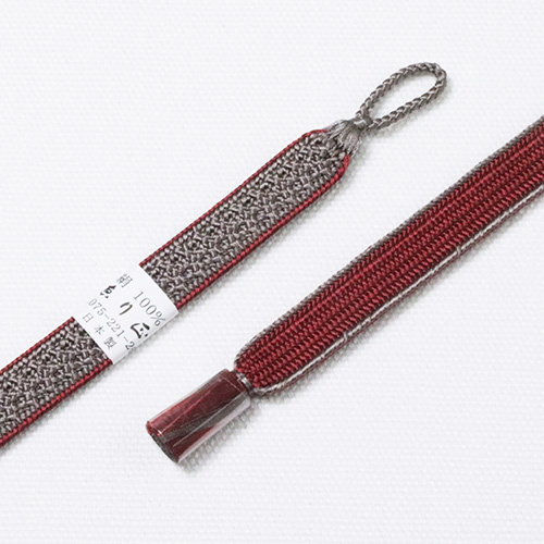 羽織紐 「女短 綾高麗耳付昼夜」 カラー: 紫鼠/真紅(12) 素材: 絹 100% 日本製 <ERISHO ORIGINAL> <MADE IN KYOTO>