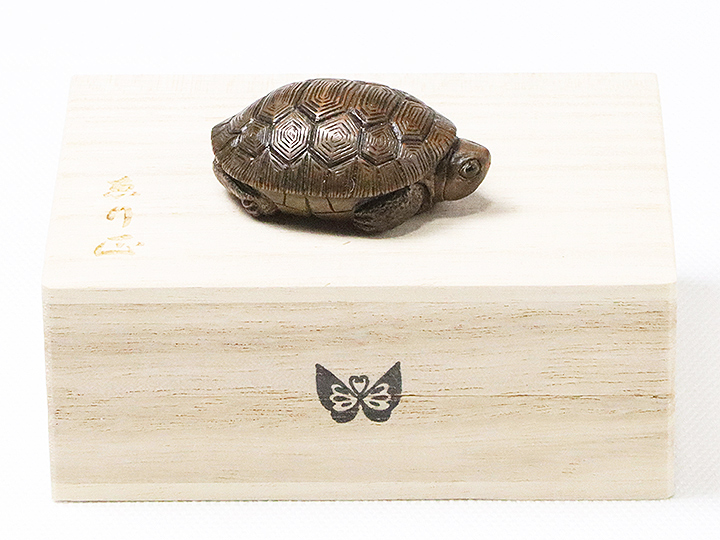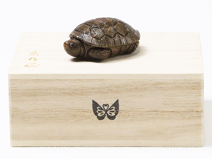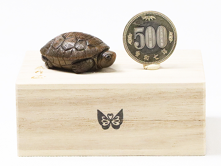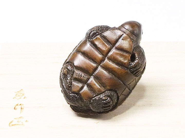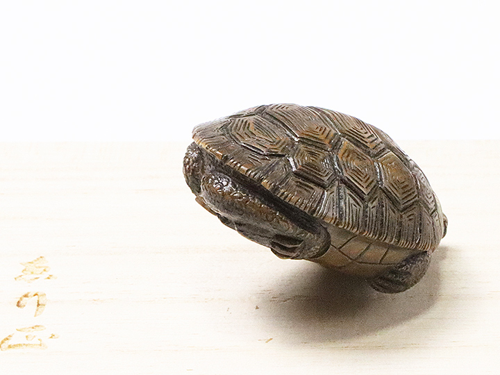 「鶴は千年、”亀は万年”」の言い伝えのように、長寿を象徴する縁起物の亀の根付。