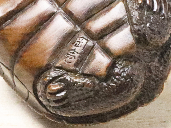 一見してまず目を引くのは、甲羅の見事な彫り。