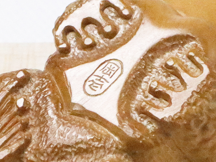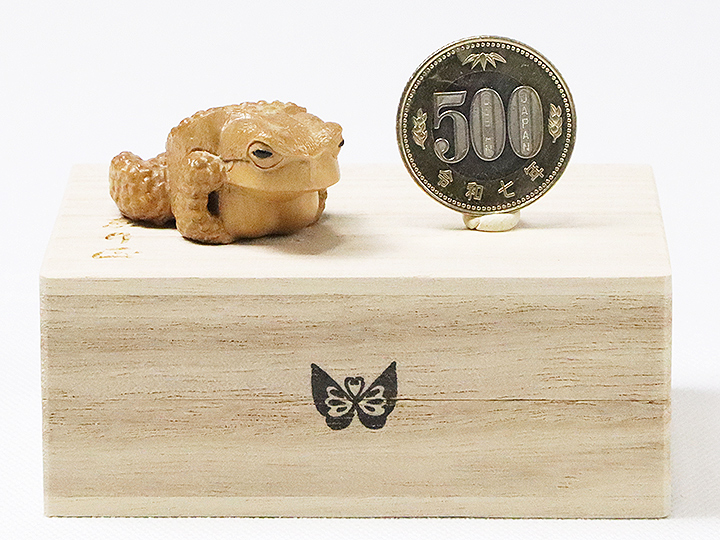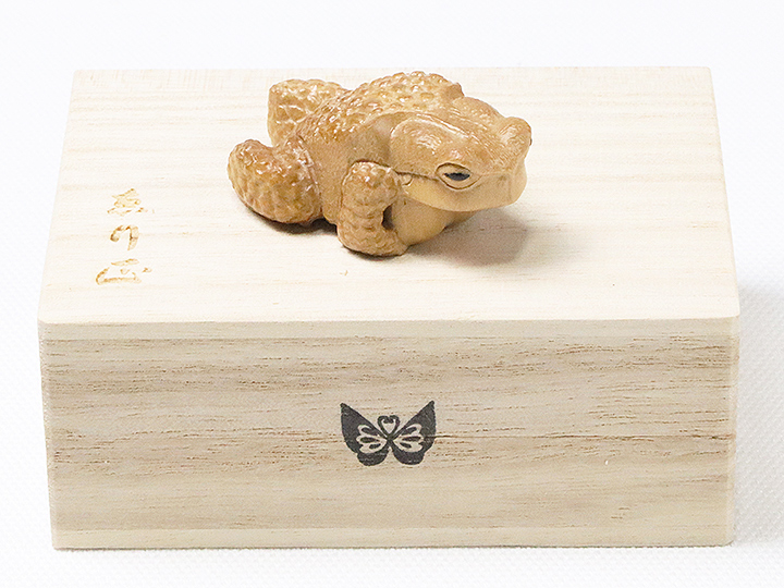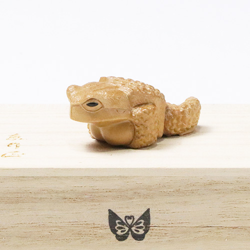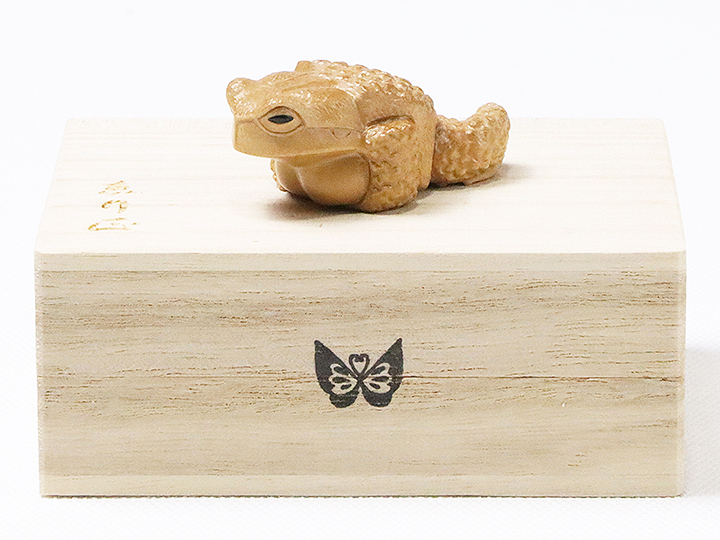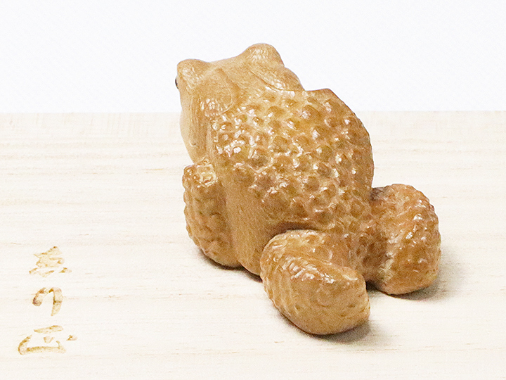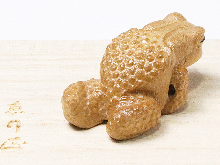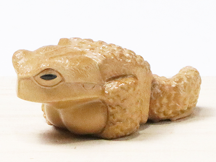 背中のイボイボが、少々気持ち悪くも、表情は可愛らしい「ガマガエル」の根付。