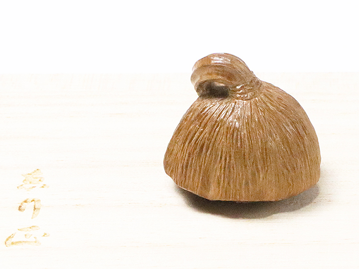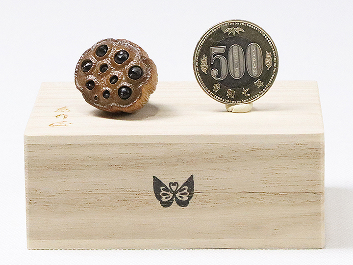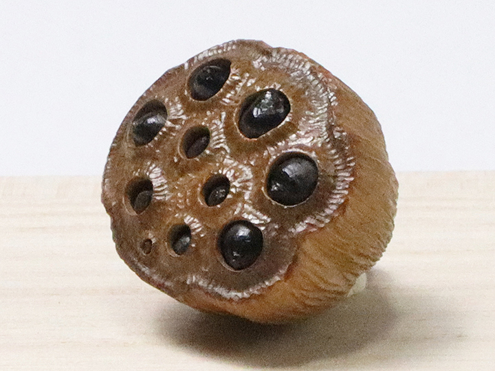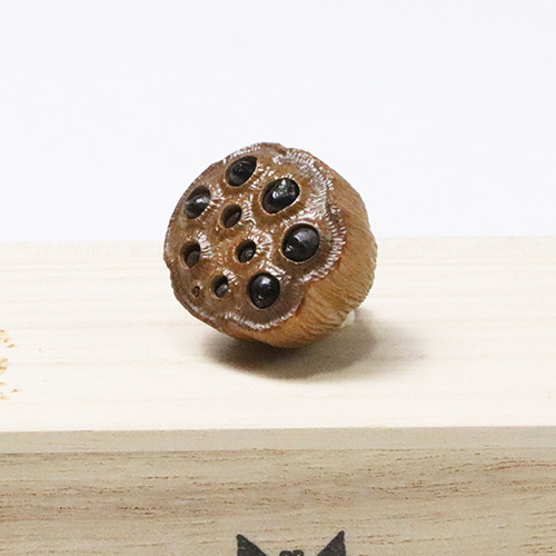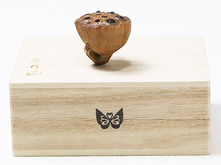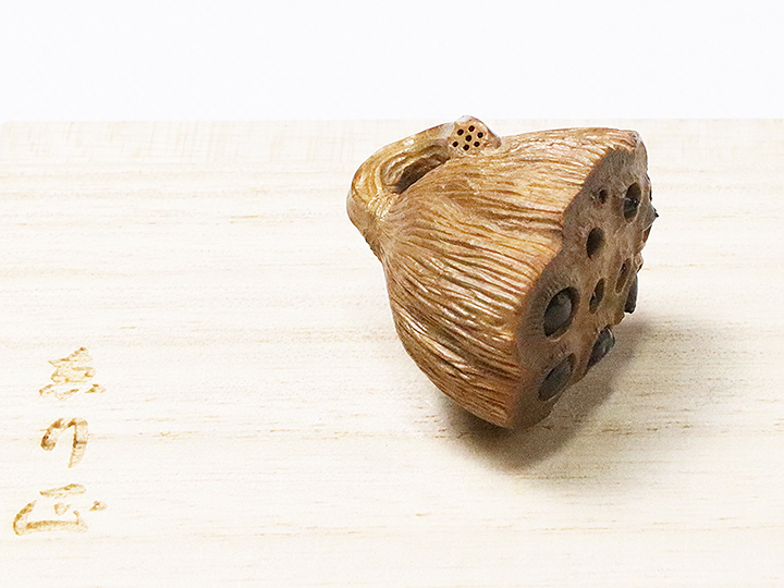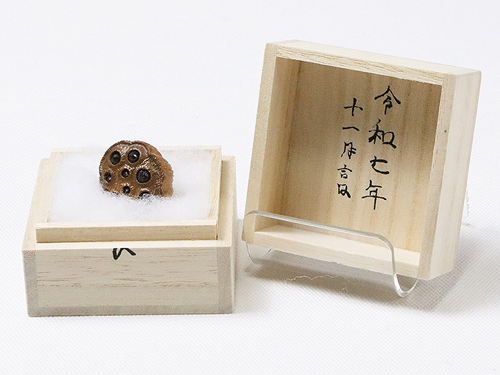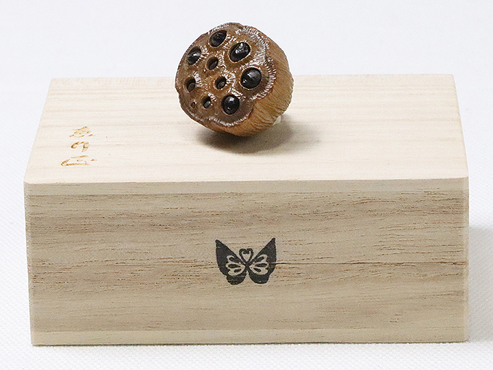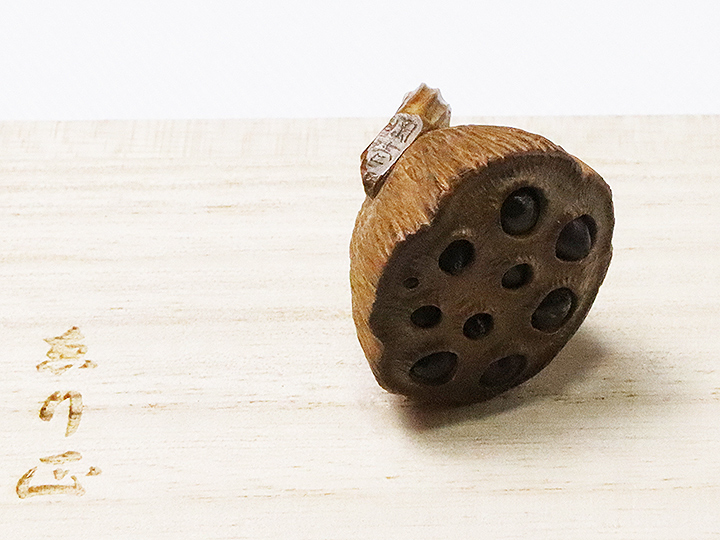 振っていただくと、カラカラ音の鳴る「からくり根付」蓮のご紹介。