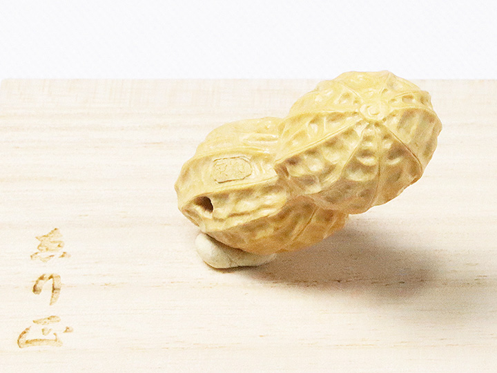 いつもながら本物の落花生と見間違うほどのリアルな質感が素晴らしい逸品です。