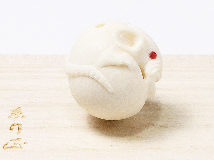 掌に収まりのいい、古来からの正統派とされる球形の丸鼠の根付です。