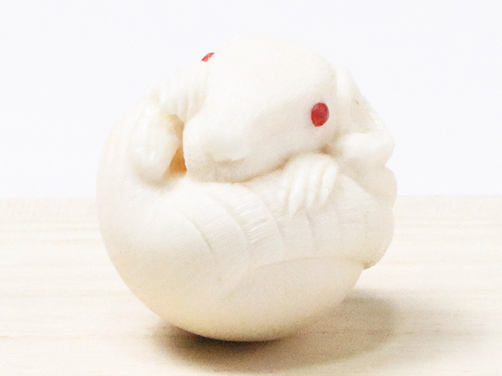 この時代入手困難な象牙を、贅沢なまでに使用した「白鼠」の根付。