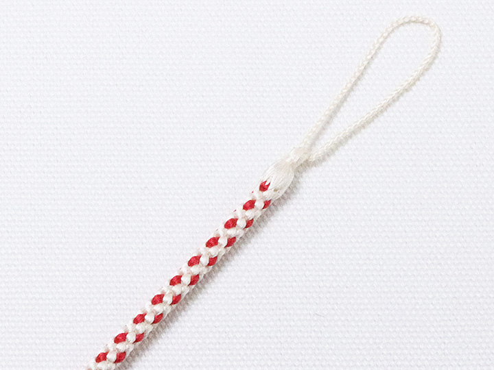 和装小物 > 時計紐 > 八津組み ホタル > 懐中時計紐 八津組み ホタル「短タイプ」 オフホワイト/深緋(こきひ)(01)