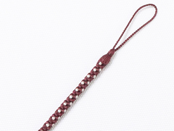 和装小物 > 時計紐 > 八津組み ホタル > 懐中時計紐 八津組み ホタル「短タイプ」 暗紅色(あんこうしょく)/絹鼠(きぬねず)(07)