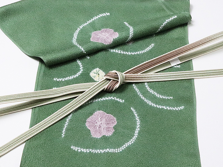 一緒に写っております帯締めは、「耳付綾竹二色ぼかし撚房 深川鼠/銀煤竹(04)」でございます。