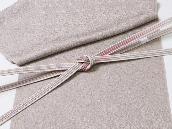 イメージとして写っております帯締めは、<耳付綾竹二色ぼかし撚房 牡丹鼠/京紫(15)>でございます。
