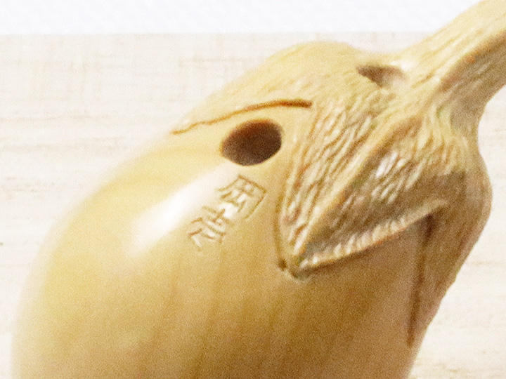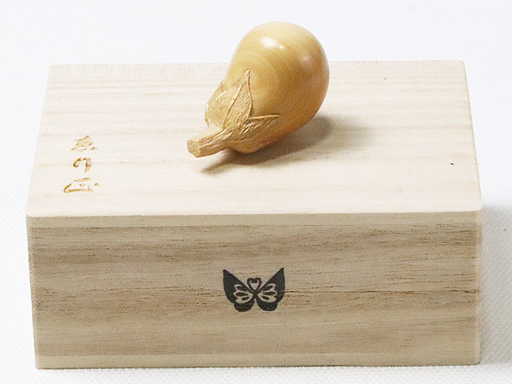 側面に現れた、黄楊の美しい木目も、ひとつの景色として作品に収まっています。