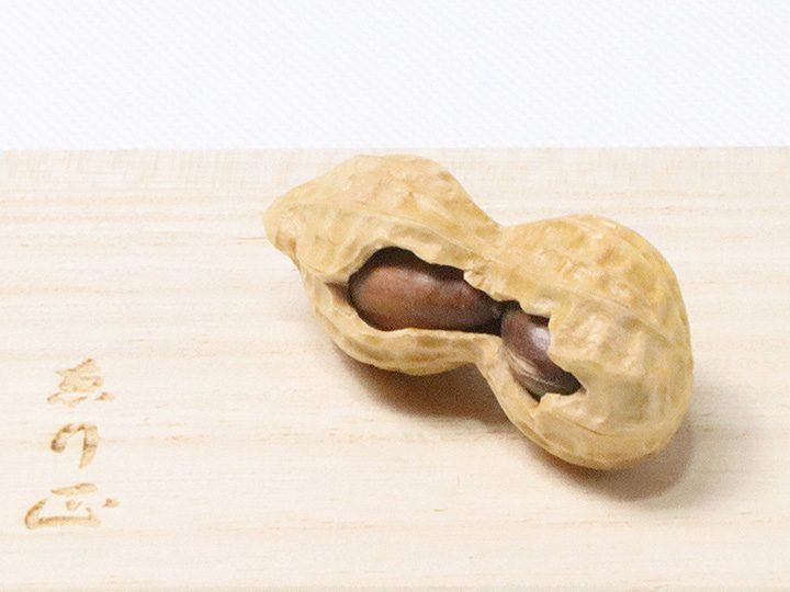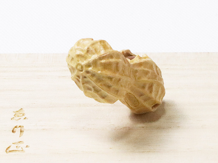 いつもながら本物の落花生と見間違うほどのリアルな質感が素晴らしい逸品です。