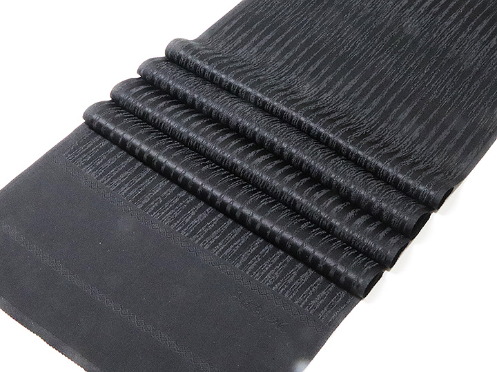 最近ではなかなか生産されない喪服用の、紋意匠「黒無地」の帯揚げです。 濃度の深い黒染めを使用した間違いのない一品です。