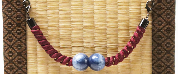 紳士羽織紐 「無双 マグネット 木目ラクト玉捻じり」 カラー: 臙脂(01) 素材:本体)絹100% 中央石)ラクト玉、マグネット、カニカン