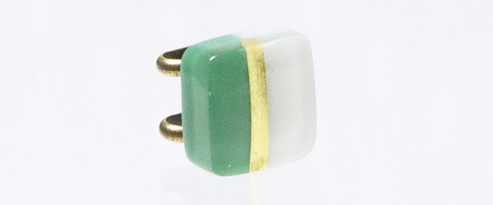 ガラス帯留め slow sphatika 「金箔ライン(緑)」 日本製 素材:クリスタルガラス・金箔・金具:真鍮