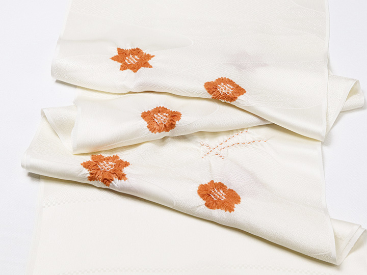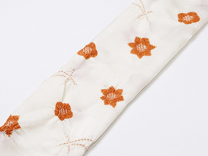 和装小物 > 帯揚げ > 帯揚げ 輪出し吹き寄せ > 帯揚げ 輪出し吹き寄せ オフホワイト/錆朱(32)