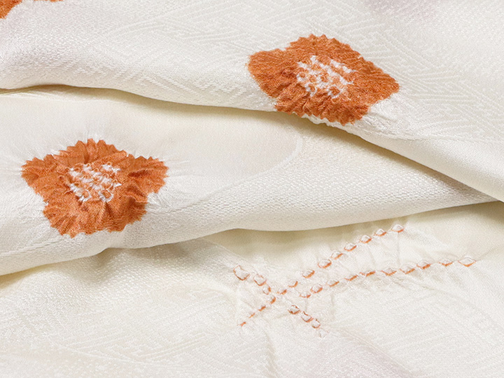 帯揚げ 「輪出し吹き寄せ」 カラー:オフホワイト/錆朱(32) 素材:絹100% 日本製 <ERISHO ORIGINAL>