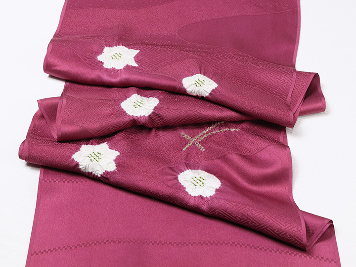和装小物 > 帯揚げ > 帯揚げ 輪出し吹き寄せ > 帯揚げ 輪出し吹き寄せ 梅紫(うめむらさき)/白練(しろねり)(37)