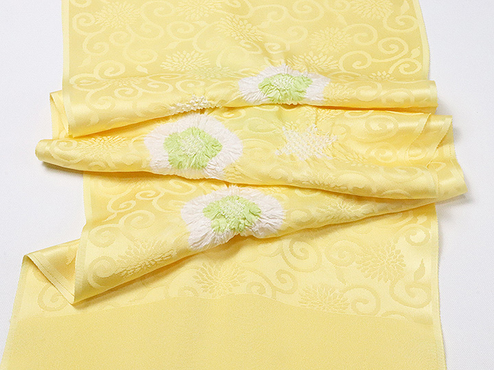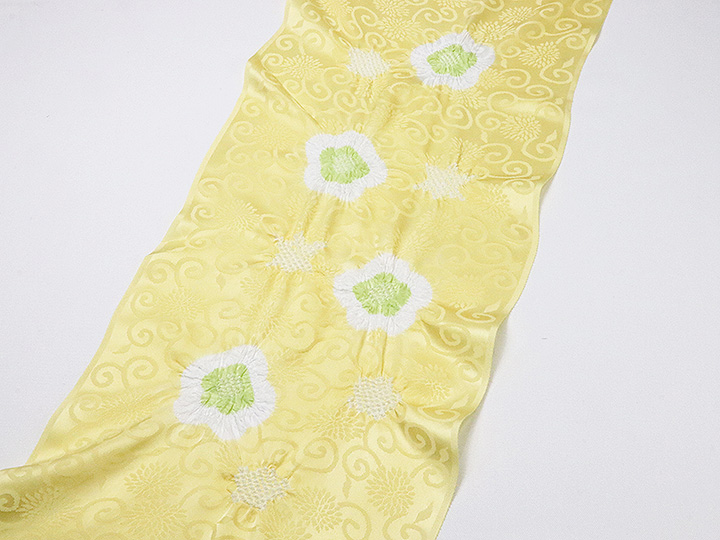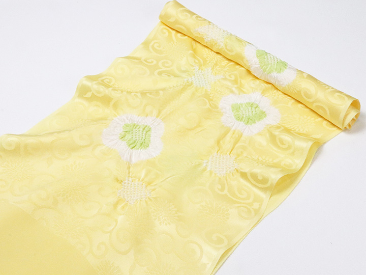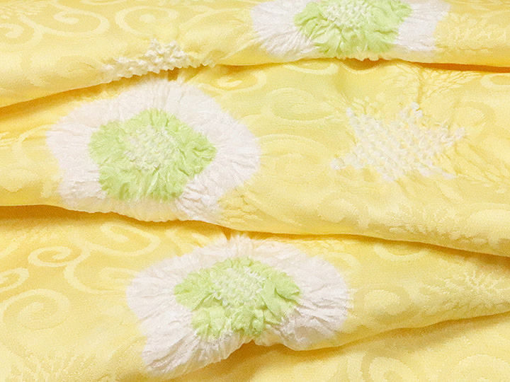 和装小物 > 帯揚げ > 帯揚げ 輪出し白場取り小花 > 帯揚げ 輪出し白場取り小花 淡黄(たんこう)/柳色(やなぎいろ)(55)