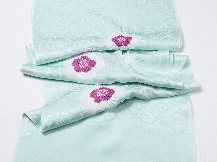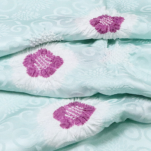 帯揚げ 「輪出し白場取り小花」 カラー: 白藍/梅紫(42) 素材:絹100% 日本製 <ERISHO ORIGINAL>