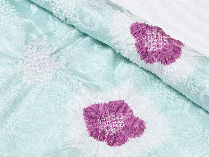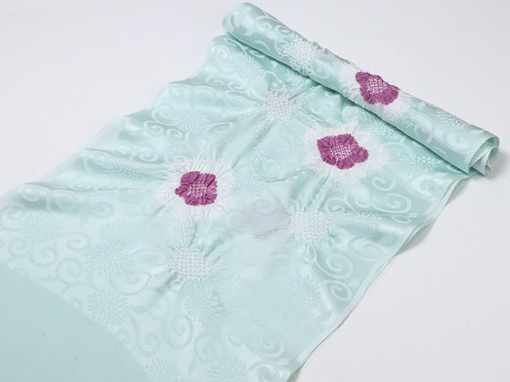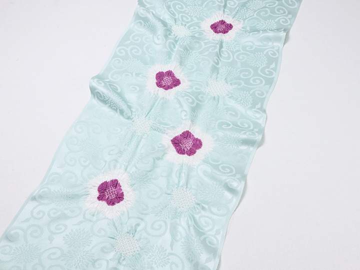 和装小物 > 帯揚げ > 帯揚げ 輪出し白場取り小花 > 帯揚げ 輪出し白場取り小花 白藍(しらあい)/梅紫(うめむらさき)(42)