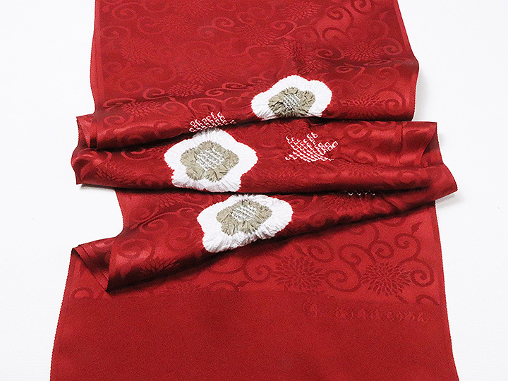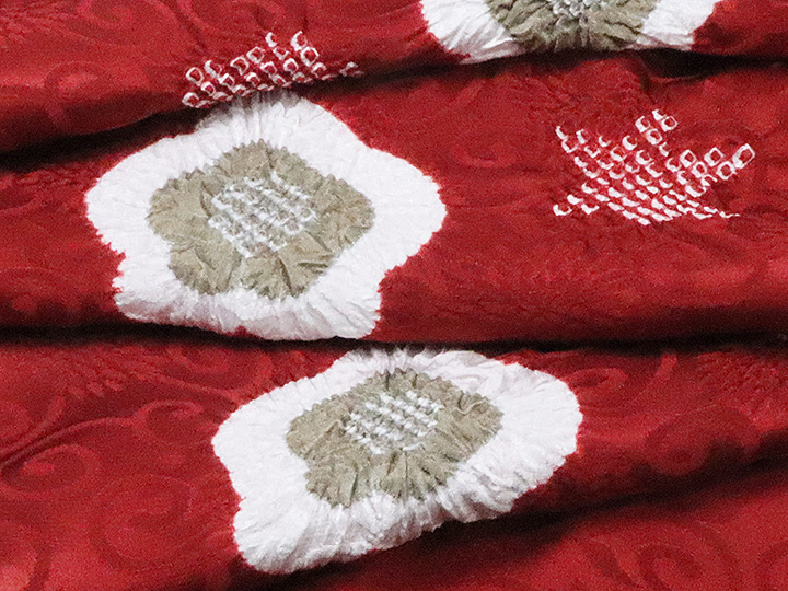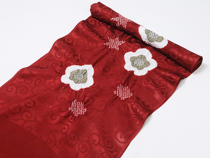 和装小物 > 帯揚げ > 帯揚げ 輪出し白場取り小花 > 帯揚げ 輪出し白場取り小花 深赤/煤色(すすいろ)(44)