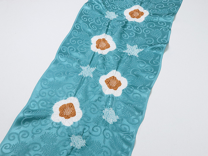帯揚げ 「輪出し白場取り小花」 カラー: 納戸色/団十郎茶(54) 素材:絹100% 日本製 <ERISHO ORIGINAL>