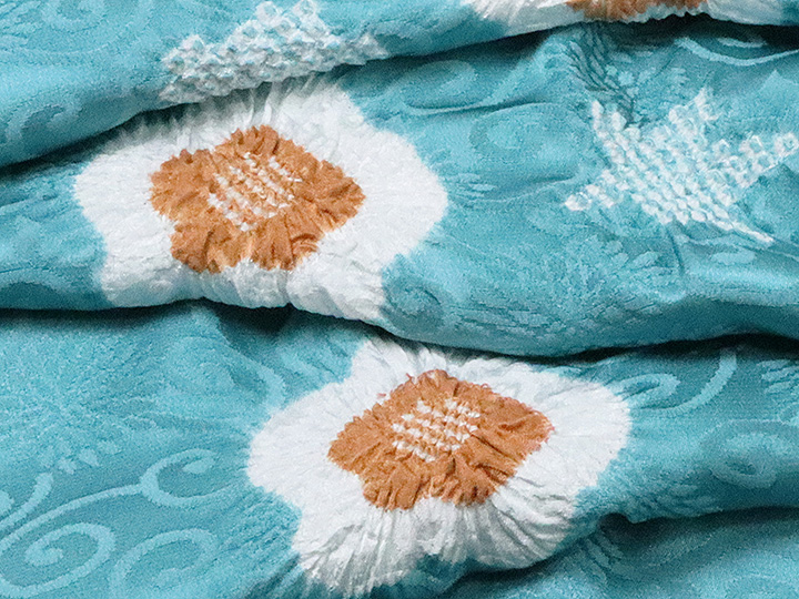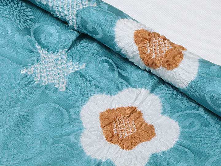 和装小物 > 帯揚げ > 帯揚げ 輪出し白場取り小花 > 帯揚げ 輪出し白場取り小花 納戸色(なんどいろ)/団十郎茶(だんじゅうろうちゃ)(54)