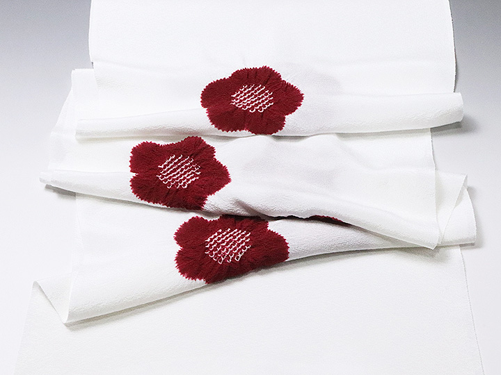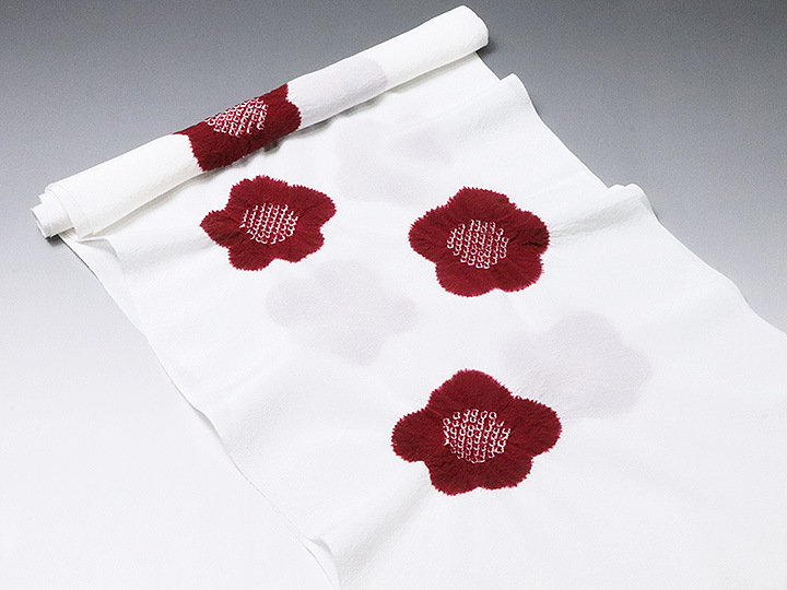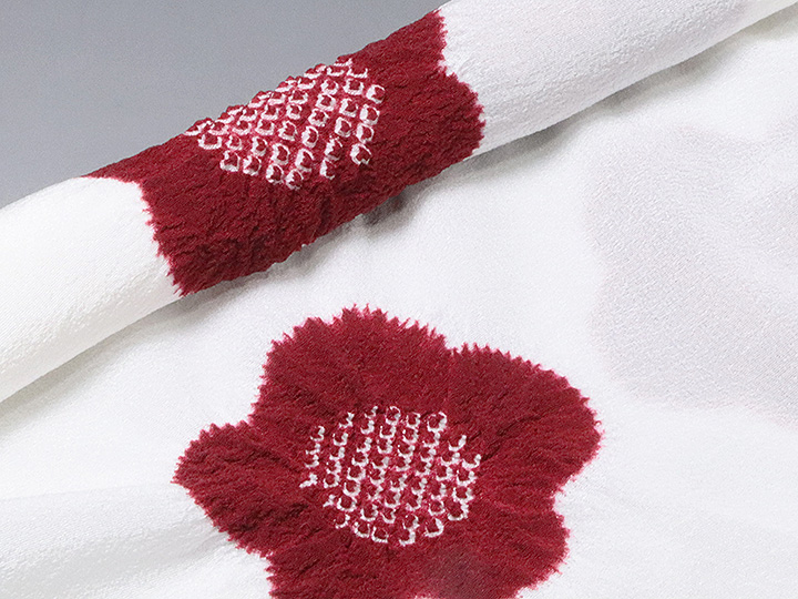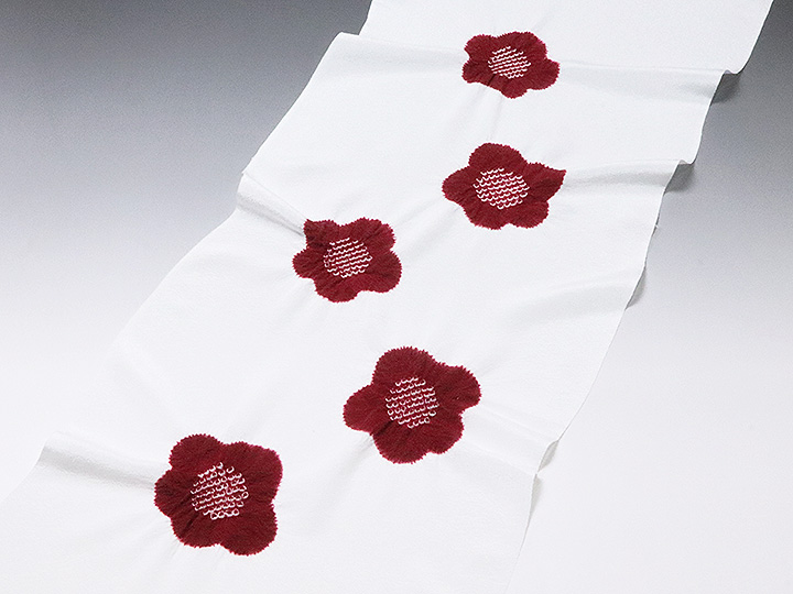 帯揚げ 「輪出し白地五ツ梅」 カラー: 白/臙脂 (01) 素材: 絹100% 日本製