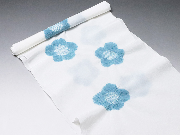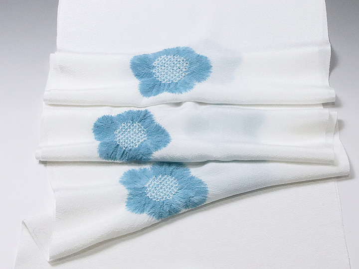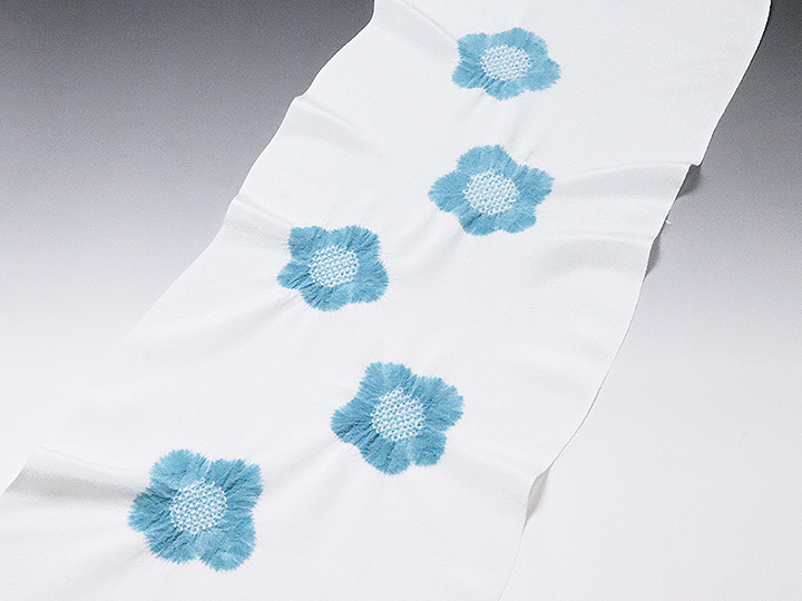 帯揚げ 「輪出し白地五ツ梅」 カラー: 白/薄縹(05) 素材: 絹100% 日本製
