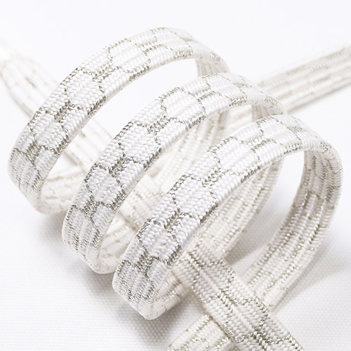 帯締め 貝の口亀甲(白/銀) (おびしめ かいのくちきっこう(しろ/ぎん))