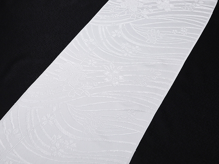 和装小物 > 黒留袖(礼装用) > 礼装用帯揚げ平モノ > 黒留袖(礼装用)帯揚げ 唐織<流水に花>