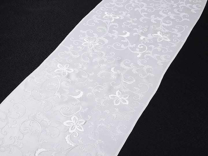 黒留袖(礼装用) 帯揚げ 「唐織刺繍<花唐草(白)> 」 素材: 絹100% 日本製
