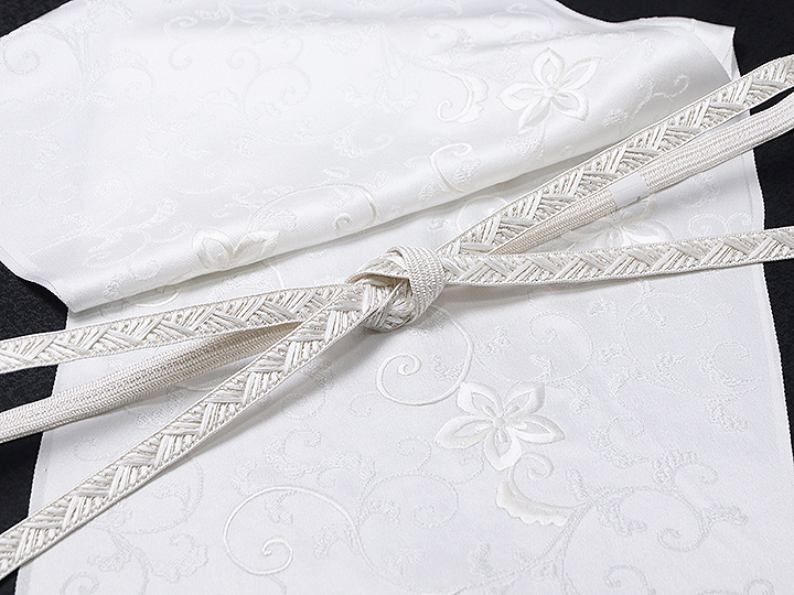 帯揚げ 唐織刺繍<花唐草(白)> (おびあげ からおりししゅう<はなからくさ(しろ)>)