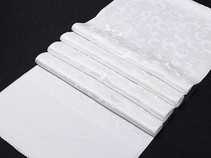 和装小物 > 黒留袖(礼装用) > 礼装用帯揚げ平モノ > 黒留袖(礼装用)帯揚げ 唐織刺繍<花唐草(白)>