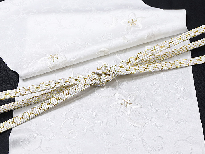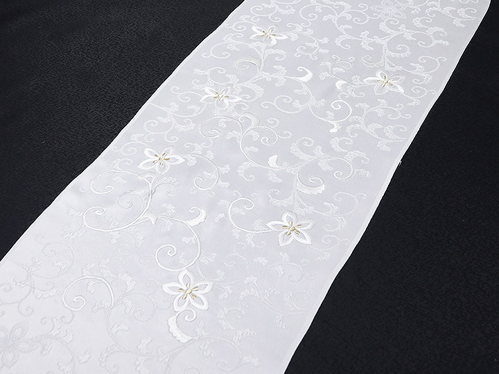 帯揚げ 唐織刺繍<花唐草(白/金)> (おびあげ からおりししゅう<はなからくさ(しろ/きん)>)